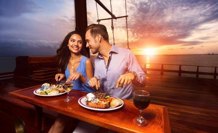Si buscas la noche romántica en Cancún perfecta, acabas de encontrarla. El Tour Columbus Cancún te invita a navegar en un majestuoso galeón español por la tranquila Laguna Nichupté mientras el cielo del Caribe se transforma en un espectáculo de colores y estrellas. Langosta fresca recién preparada, saxofón en vivo que acaricia el alma, luces tenues y la persona que más quieres a tu lado… Esta cena en crucero en Cancún no es solo comida: es un recuerdo que durará para siempre.Ideal para aniversarios, pedidas de mano, lunas de miel o simplemente porque el amor se celebra todos los días.