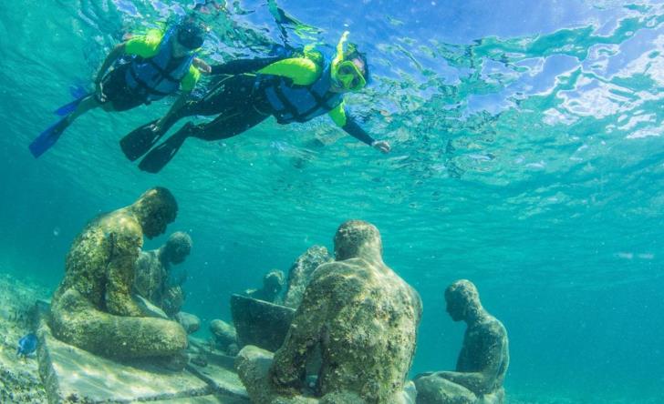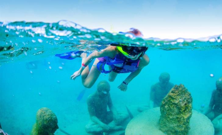Imagina nadar entre peces de colores y 16 esculturas increíbles de MUSA como “El Jardín de la Esperanza” – el Snorkel en Punta Nizuc une arte y naturaleza en un lugar único. Destaca entre los tours en cancun y es genial para niños y novatos..